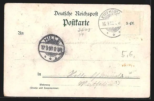 gelaufen 1899, Briefmarke entfernt, Eckknick unten re., guter Zustand