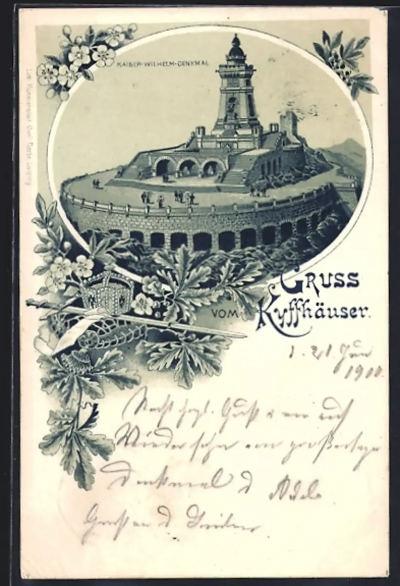 Lithographie Kyffhäuser, Kaiser-Wilhelm-Denkmal, Einweihung 1896