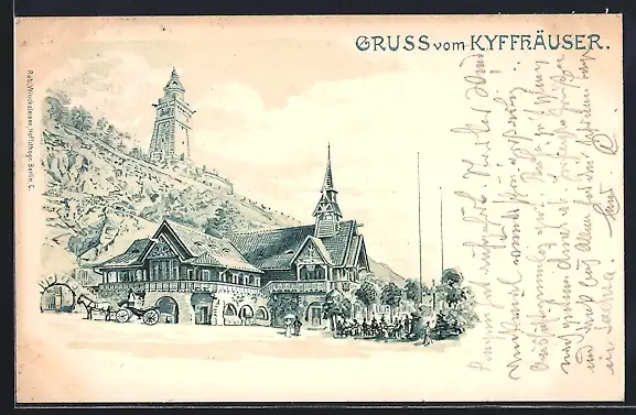 Lithographie Kyffhäuser / Kaiser Wilhelm Denkmal, Gebäudeansicht