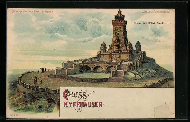 Lithographie Kyffhäuser, Kaiser Wilhelm-Denkmal, Halt gegen das Licht