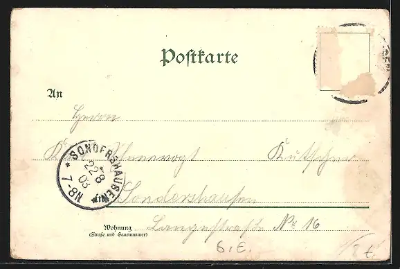 gelaufen 1903, Briefmarke entfernt, rückseitig Oberflächenschaden, Eckknick li. unten, guter Zustand