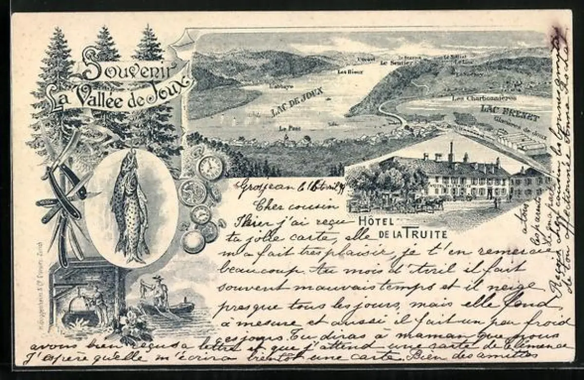 Lithographie La Vallée de Joux, Hotel de la Truite, Vue générale