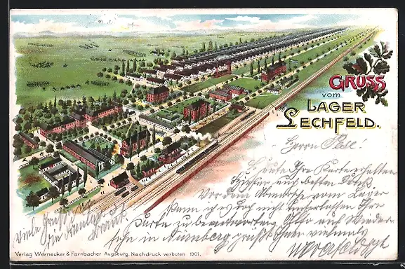 Lithographie Lager Lechfeld, Blick auf das Lager