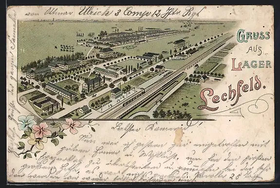 Lithographie Lager Lechfeld, Truppenlager aus der Vogelschau