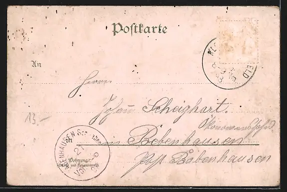 gelaufen 1898, Briefmarke entfernt, Abriebspur unten mittig, guter Zustand