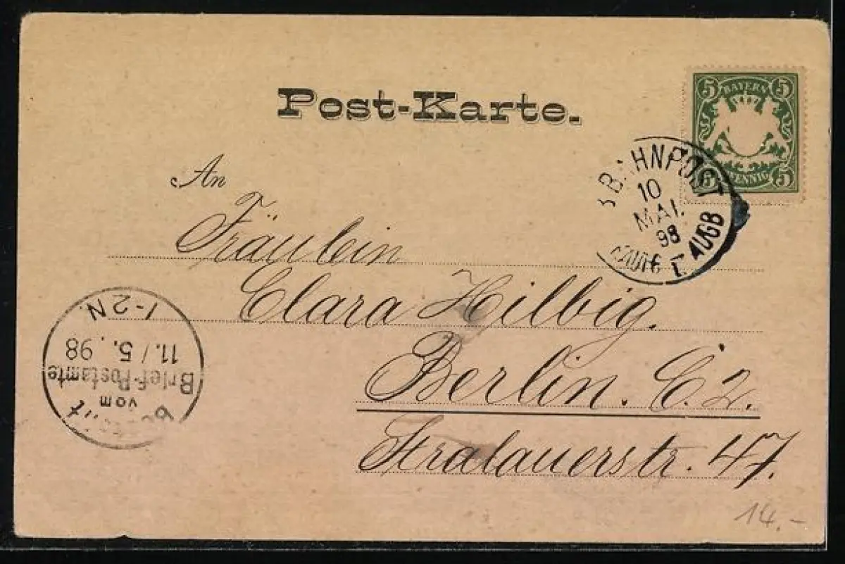 gelaufen 1898, Eckknicke li. oben u. re. unten, Stempelspur, guter Zustand