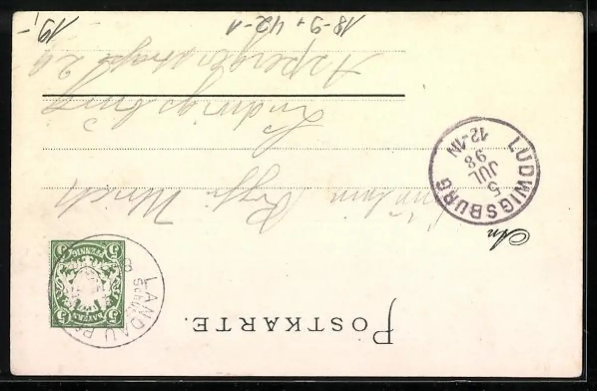 Lithographie Landau /Pfalz, 16. Verbands- und 25-jähriges Jubiläums-Schiessen 1898, Ganzsache Bayern