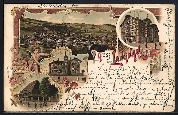 Lithographie Langnau, Hotel Loewen, Druckerei, Alte Markthalle, Totalansicht