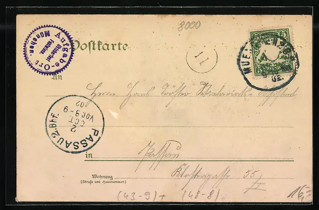 gelaufen 1902, Eckknick re. oben, guter Zustand