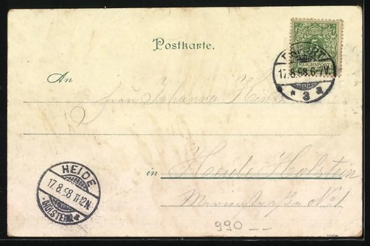 gelaufen 1898, Eckknick re. oben und li. unten, guter Zustand