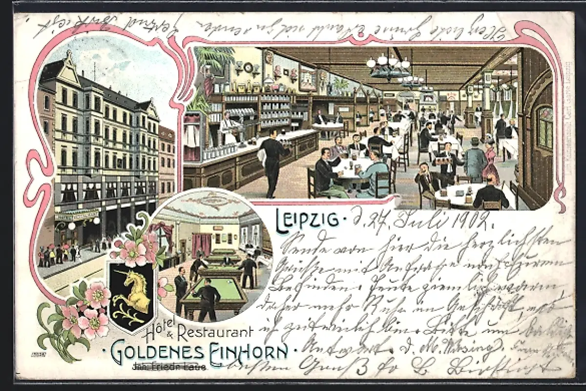 Lithographie Leipzig, Hotel und Restaurant Goldenes Einhorn, Inh. Friedr. Laue