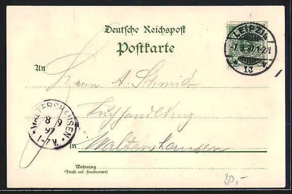 gelaufen 1897, Eckknick li. unten, Bugspur li. oben, guter Zustand