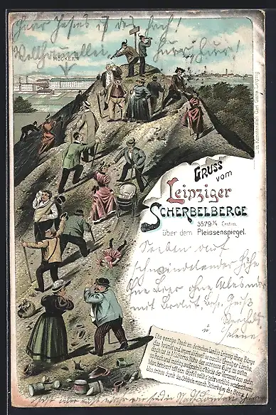 Lithographie Leipzig, Scherbelberg mit Besuchern, Blick auf Möckern
