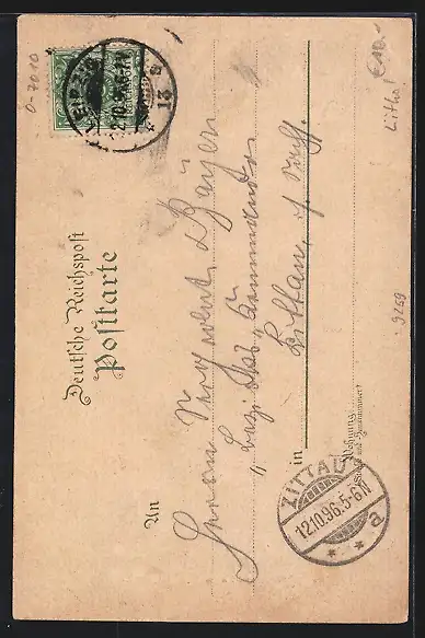 gelaufen 1896, Eckknick oben li., guter Zustand