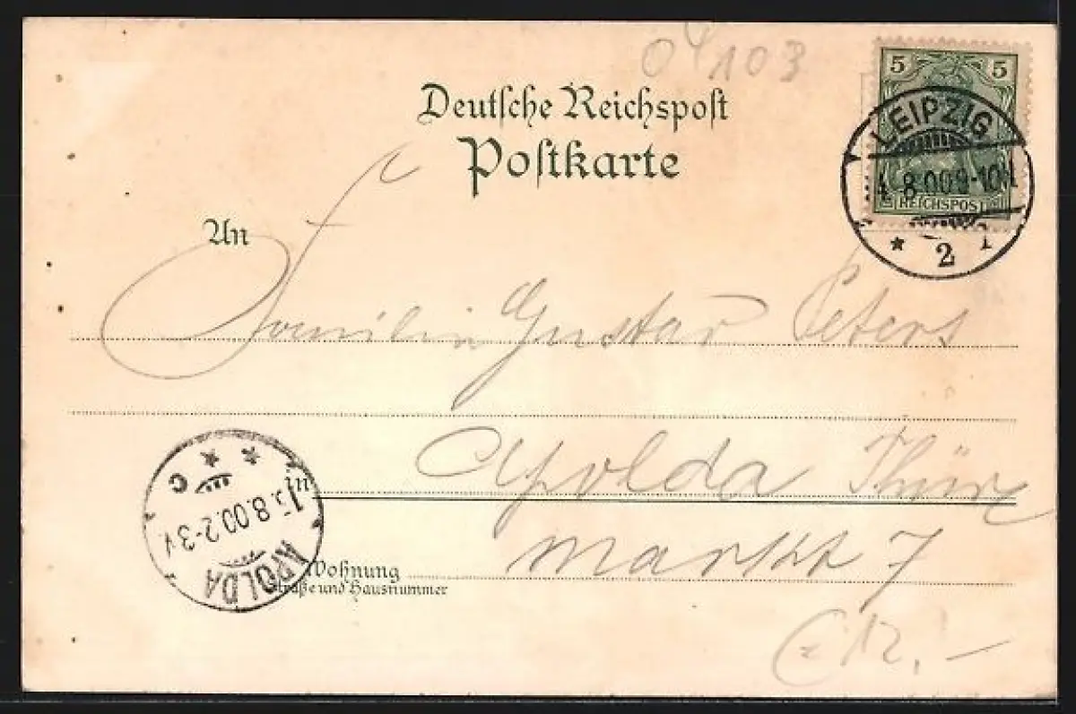 gelaufen 1900, Eckknick rechts unten, guter Zustand