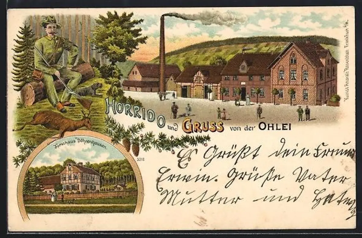 Lithographie Liebenburg, Gasthaus zur Ohlei, Forsthaus Döhrenhausen