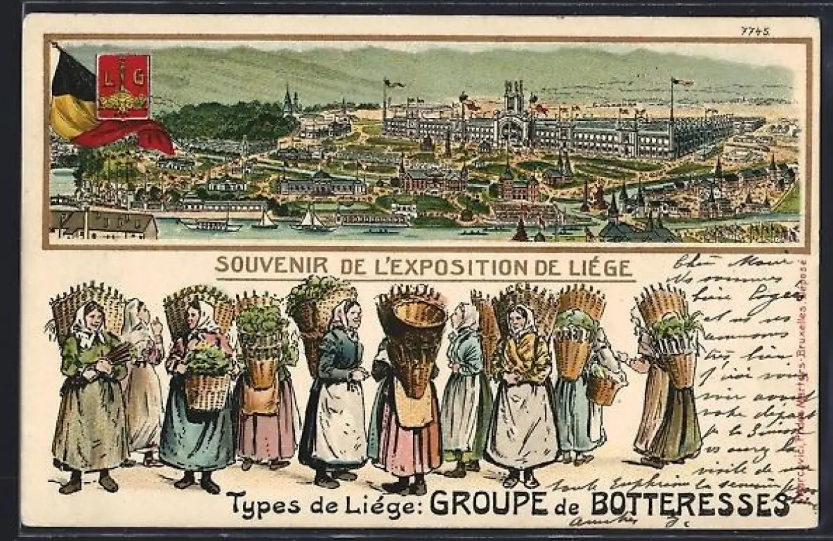 Lithographie Liége, L`Exposition de Liége, Groupe de Botteresses