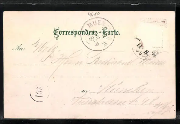 gelaufen 1899, Briefmarke tw. entfernt, rückseitig Oberflächenschaden, guter Zustand