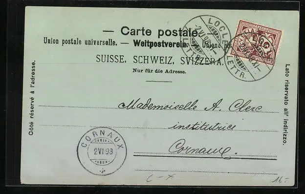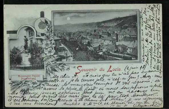 Lithographie Locle, Gesamtansicht, Monument Daniel Jeaurichard