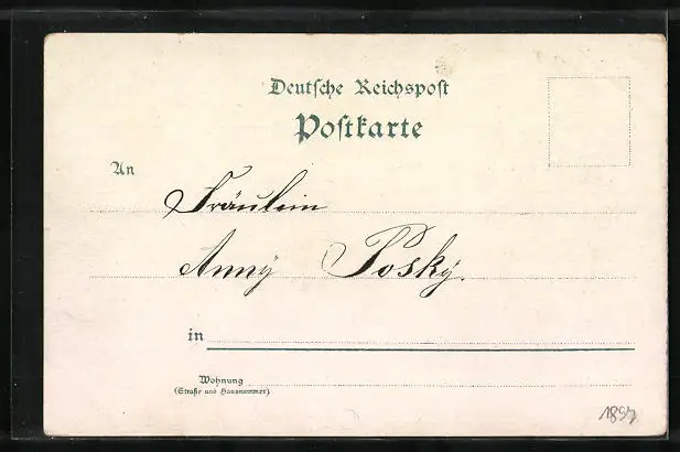 Personenbezogene Daten auf der Rückseite der Karte wurden durch blauen Textmarker unkenntlich gemacht. Die blauen Stellen sind auf die Vorderseite durchgeweicht und wirken sich negativ auf das Postkartenfoto aus