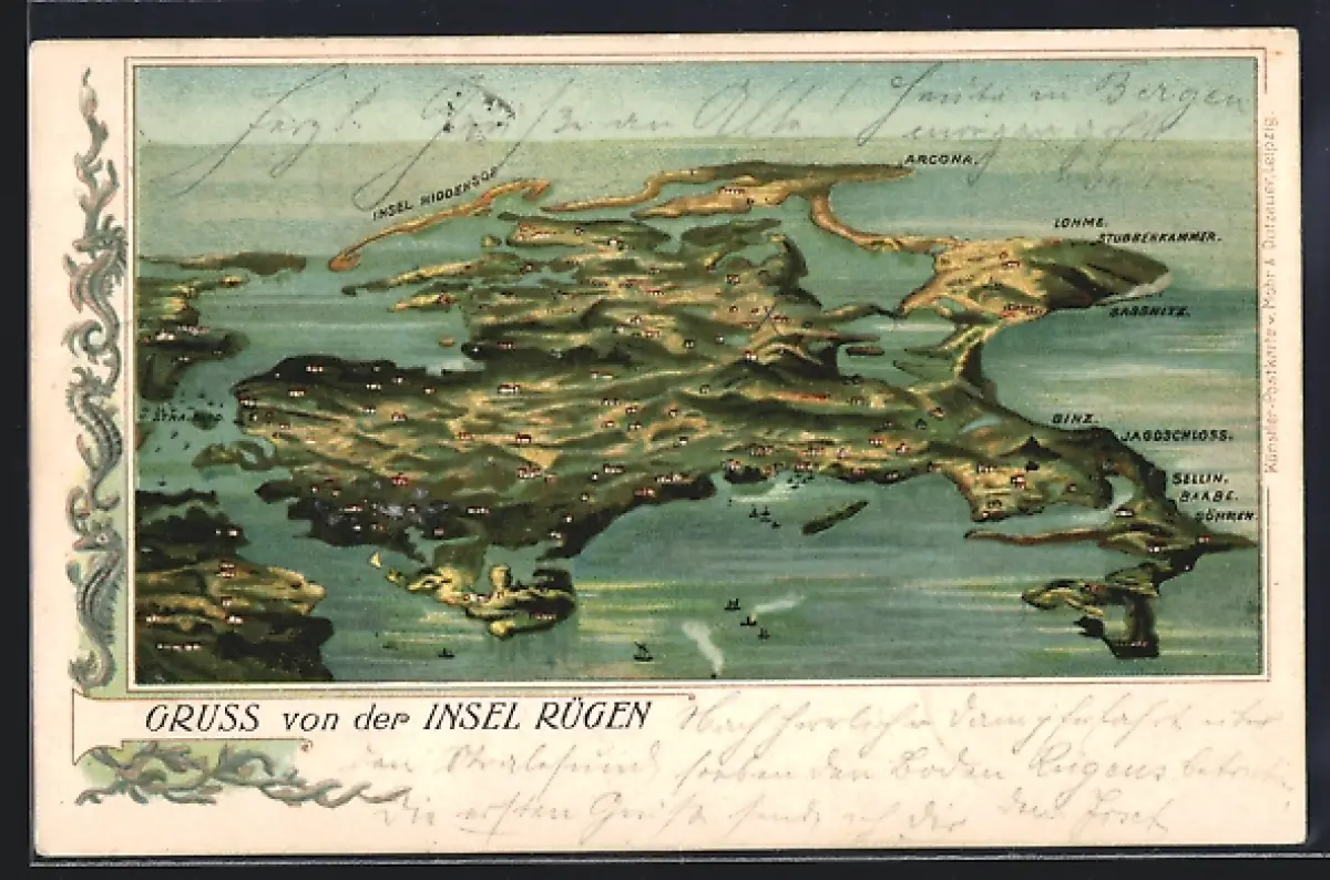 Lithographie Lohme /Rügen, Übersichtskarte der Insel Rügen