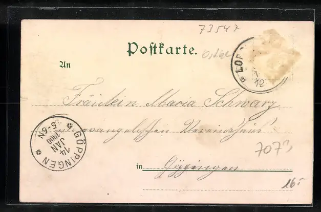 gelaufen 1900, Briefmarke entfernt, guter Zustand