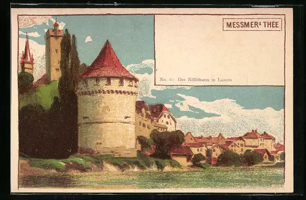 Lithographie Luzern, Nöllithurm, Reklame Messmer`s Thee