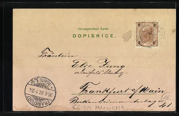 gelaufen 1897, Eckknick li. unten, guter Zustand
