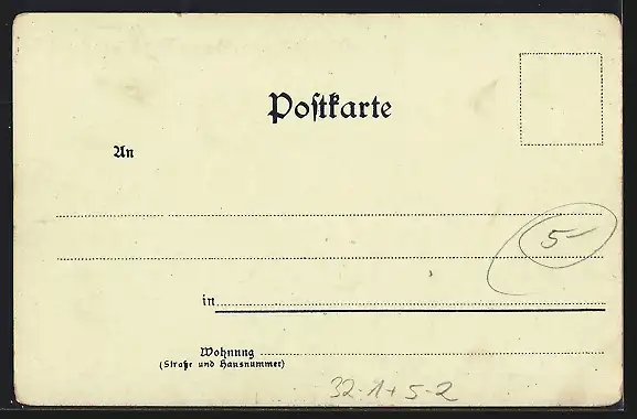 Personenbezogene Daten auf der Rückseite der Karte wurden durch blauen Textmarker unkenntlich gemacht. Die blauen Stellen sind auf die Vorderseite durchgeweicht und wirken sich negativ auf das Postkartenfoto aus