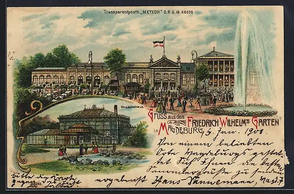 Lithographie Magdeburg, Gasthof Friedrich Wilhelm`s Garten, Halt gegen das Licht: Mondenschein