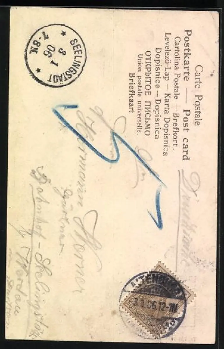gelaufen 1906, Eckknick li. oben, guter Zustand