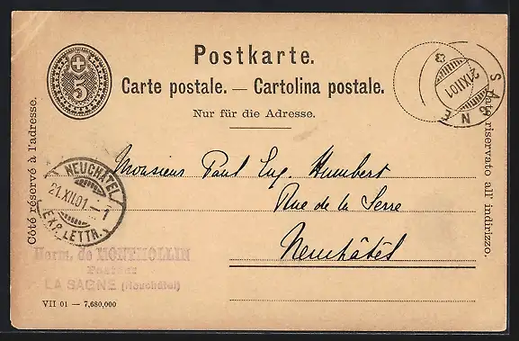 gelaufen 1901, Eckknick re. oben, guter Zustand