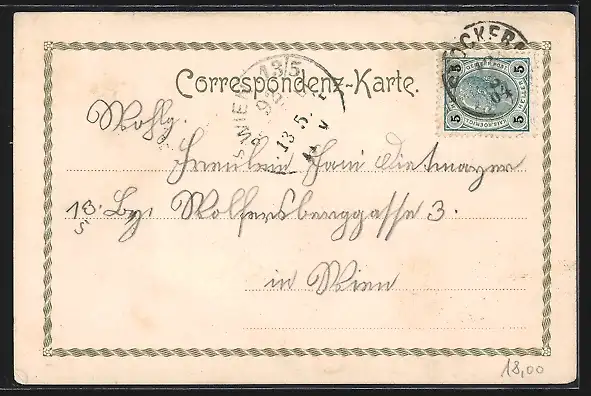 gelaufen 1904, Bugspur oben li., minimaler Einriss oben mittig, guter Zustand