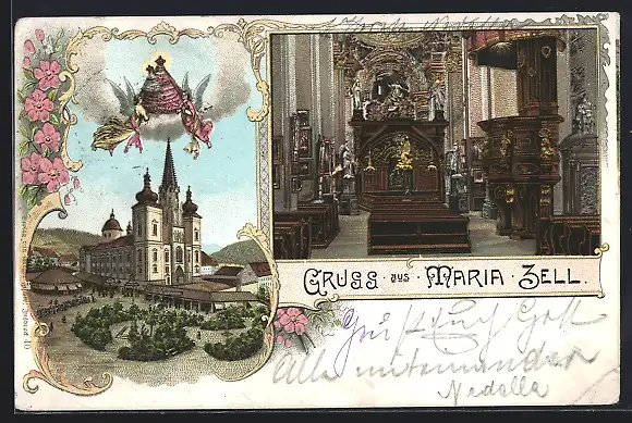 Lithographie Maria Zell, Wallfahrtskirche, Innenansicht