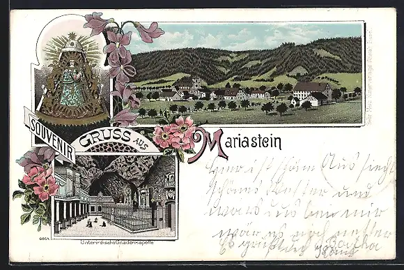 Lithographie Mariastein /SO, Unterirdische Gnadenkapelle, Ortsansicht