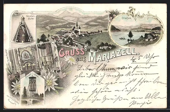 Lithographie Mariazell, Ortsansicht, Gnaden-Mutter, Bürger-Alpe