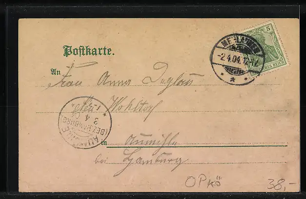 gelaufen 1904, Eckknick unten re., guter Zustand