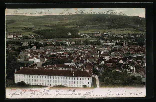 Lithographie Meiningen, Generalansicht der Stadt