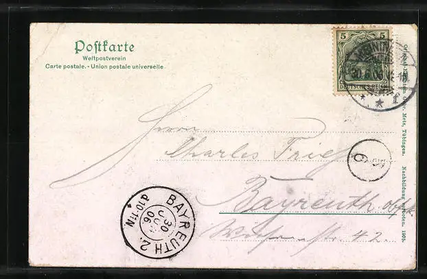 gelaufen 1906, Eckknick rechts oben, guter Zustand
