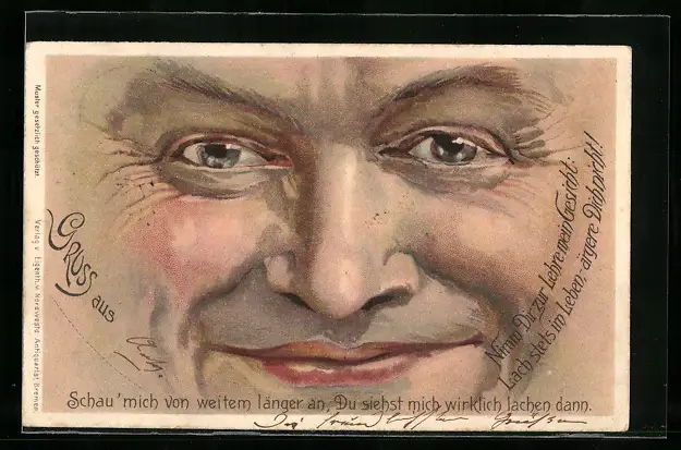 Lithographie Menschliches Gesicht lächelt, wenn man länger draufschaut