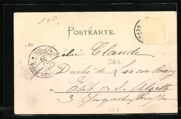 gelaufen 1899, Briefmarke entfernt, guter Zustand