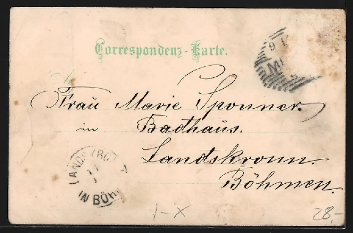 gelaufen, Briefmarke entfernt, rückseitig Oberflächenschaden, Eckknicke re., Bugspur re. mittig, guter Zustand
