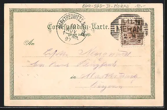 gelaufen 1897, Eckknick li. unten, guter Zustand