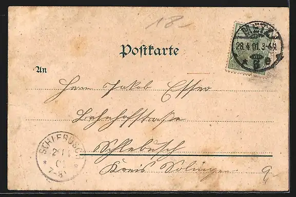 gelaufen 1901, Eckknick re. unten, guter Zustand