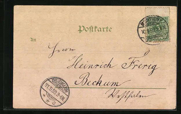 gelaufen 1899, Einriss li. mittig, Eckknick li. oben, guter Zustand