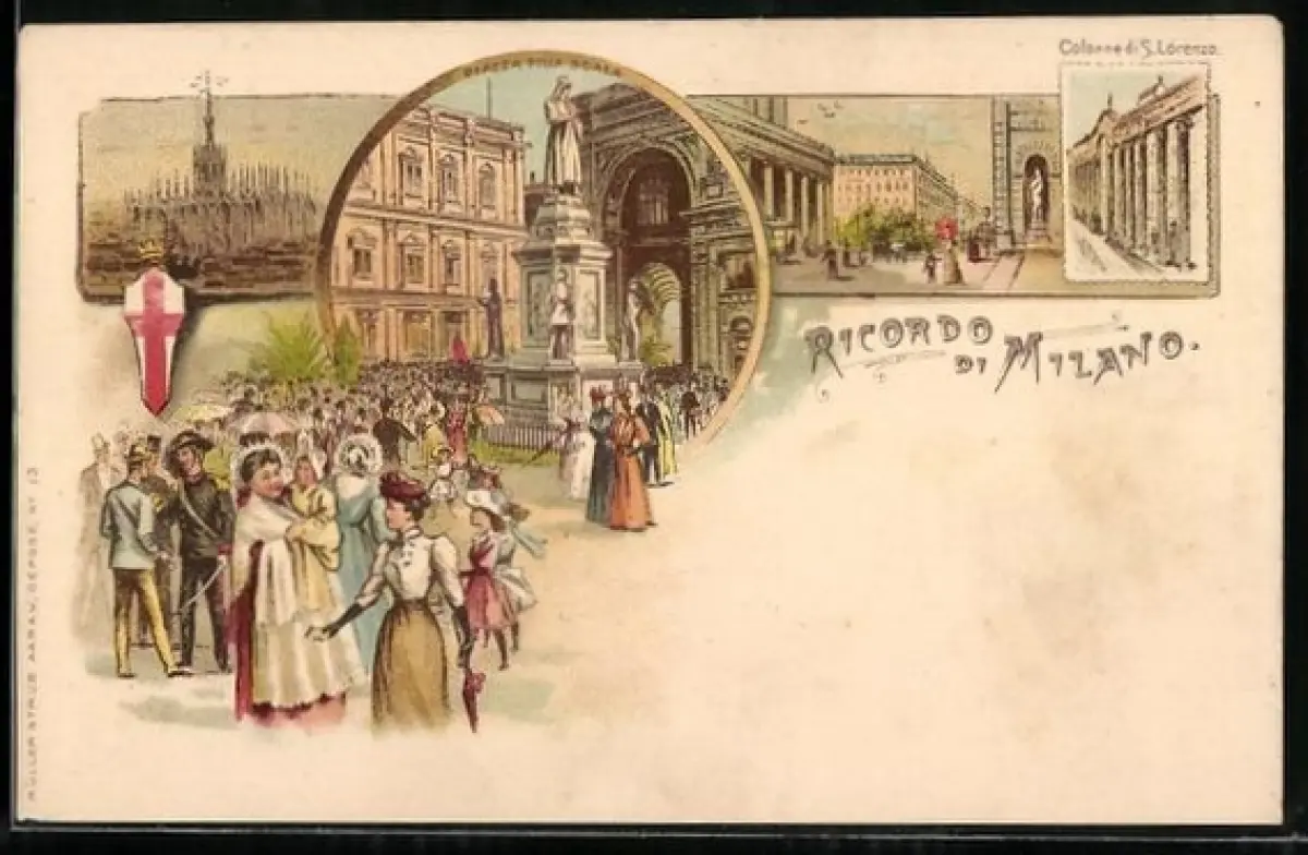 Lithographie Milano, Colonne di S. Lorenzo, Piazza della Scala