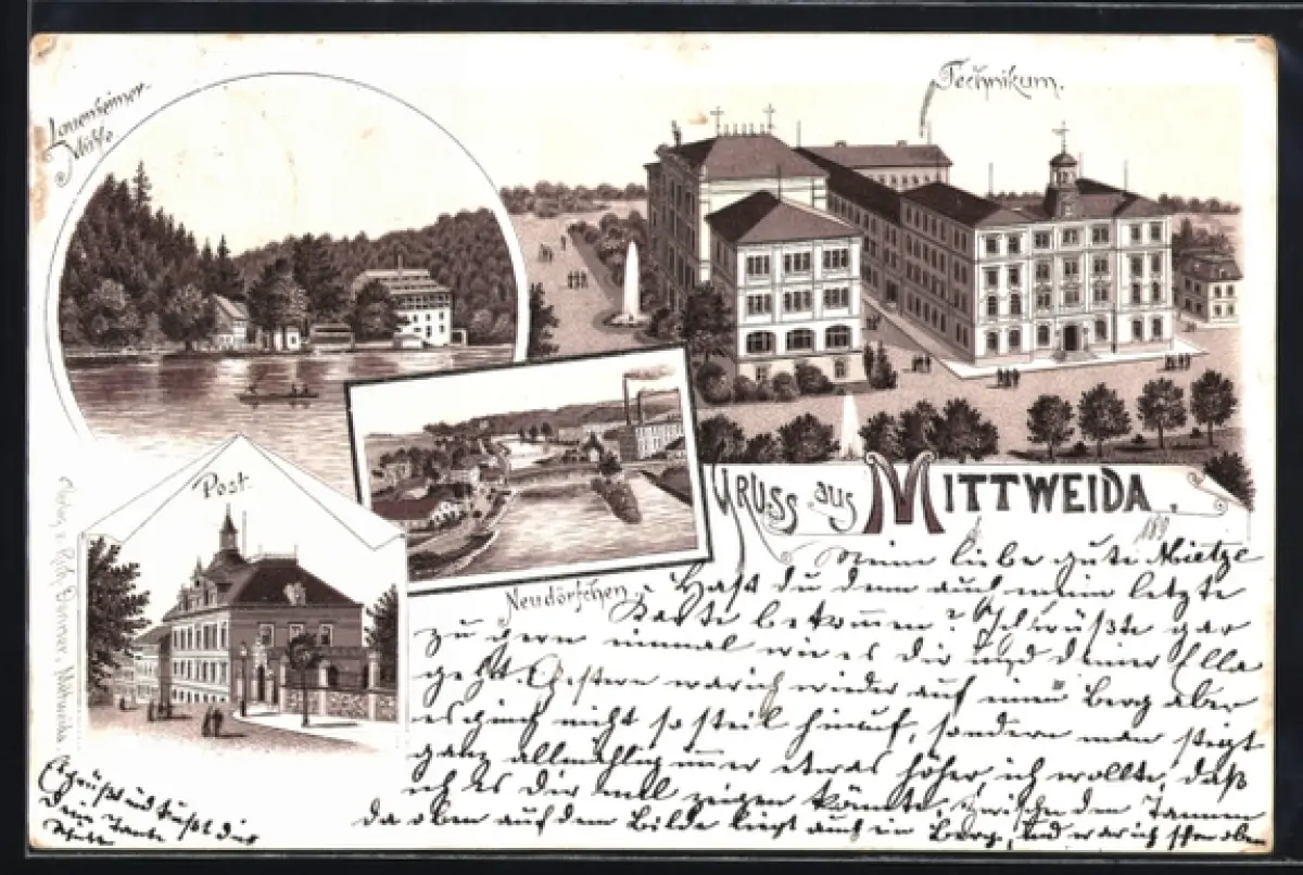 Lithographie Mittweida, Neudörfchen, Post