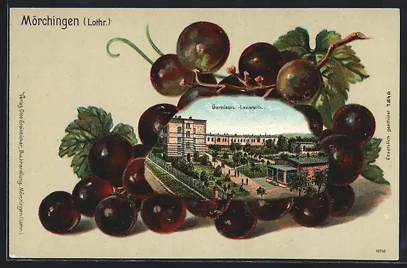 Lithographie Mörchingen /Lothr., Blick auf Garnison-Lazareth, Weintrauben