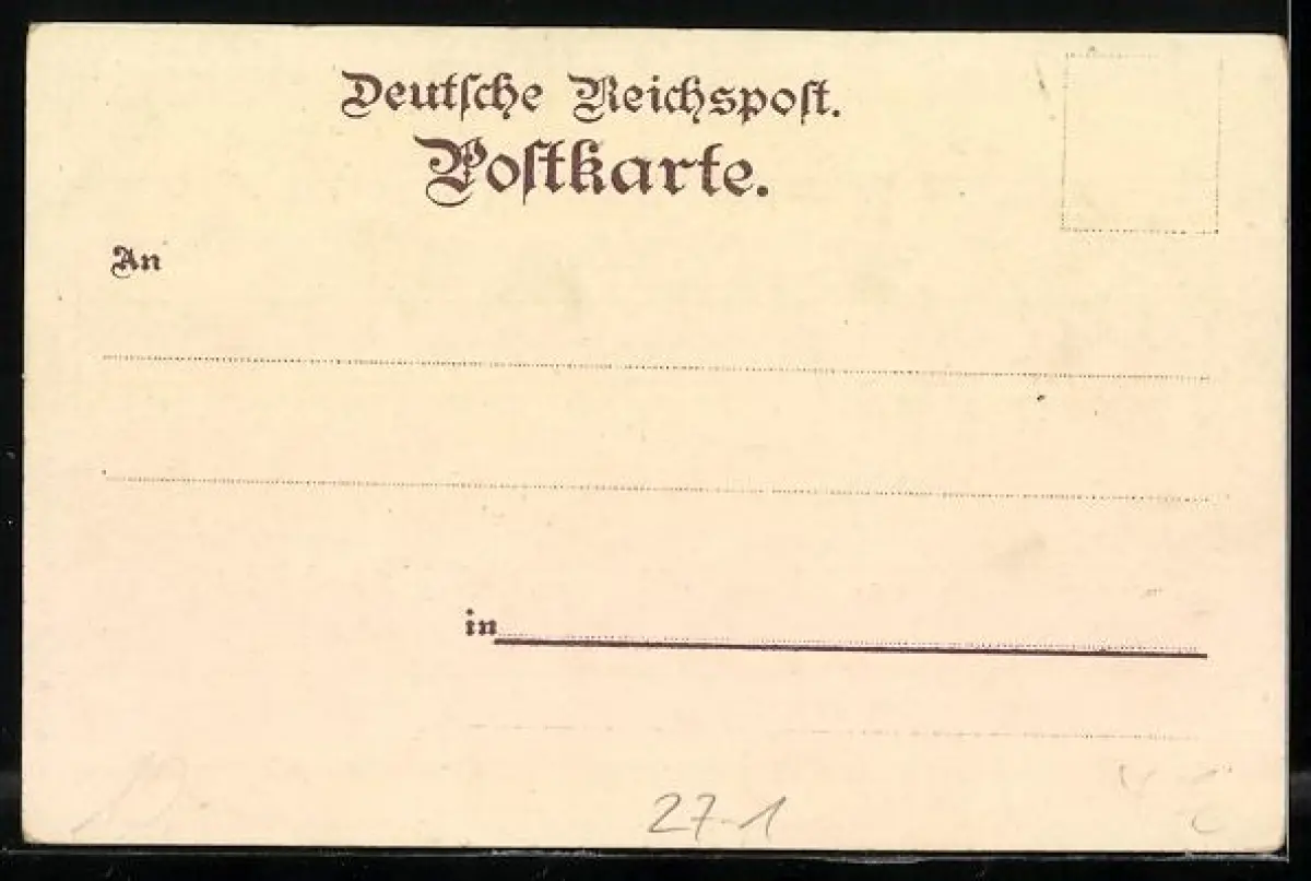 Personenbezogene Daten auf der Rückseite der Karte wurden durch blauen Textmarker unkenntlich gemacht. Die blauen Stellen sind auf die Vorderseite durchgeweicht und wirken sich negativ auf das Postkartenfoto aus