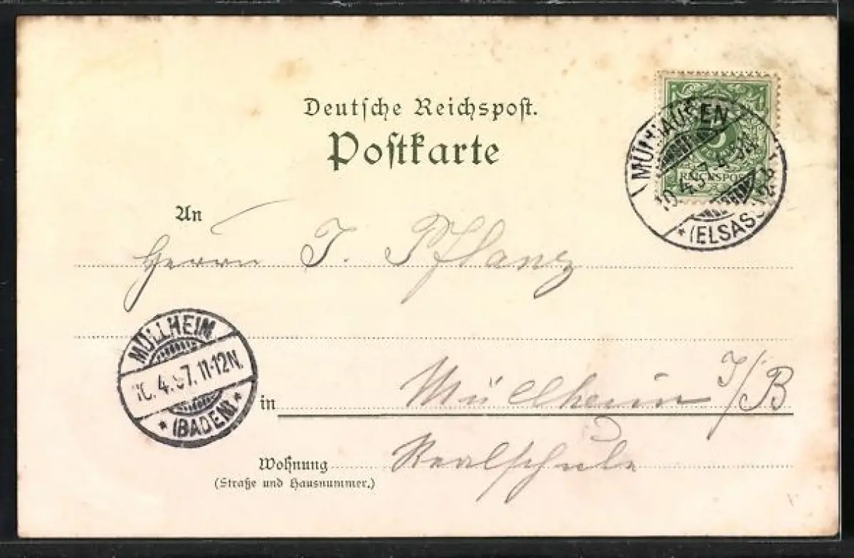 gelaufen 1897, Eckknicke li. oben, guter Zustand